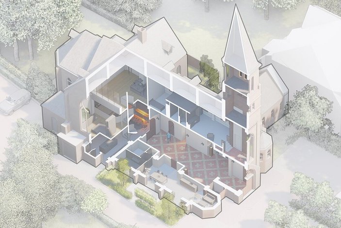 Veel bijzondere elementen van de kerk blijven behouden, zoals de biechtstoelen. Nieuwe ramen komen op de begane grond, en voorzetwanden en glaspanelen zorgen voor goede isolatie.
