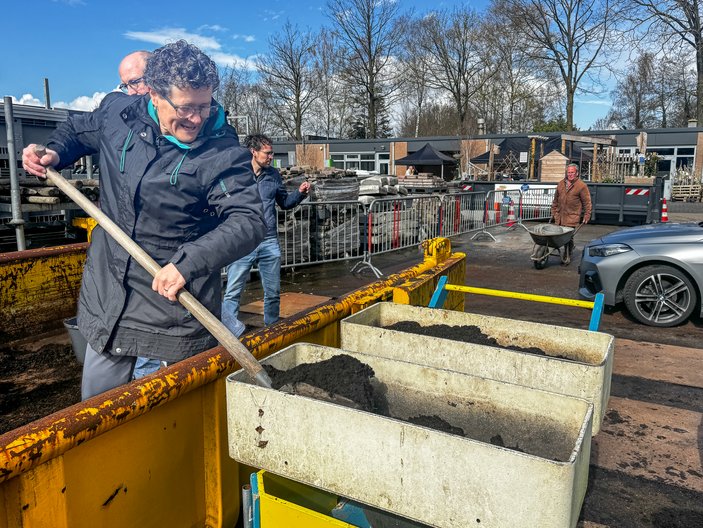 Er werd volop compost uitgedeeld, gemaakt van lokaal ingezameld groente-, fruit- en tuinafval. De gemeente is blij om te zien dat hier zo dankbaar gebruik van werd gemaakt. Veel inwoners vulden hun emmers, bakken en aanhangers met compost en houtsnippers. Deze houtsnippers, afkomstig van snoeiafval van de gemeente, zijn populair als natuurlijke bodembedekking. Ze houden de grond vochtig en helpen onkruid tegen te gaan.